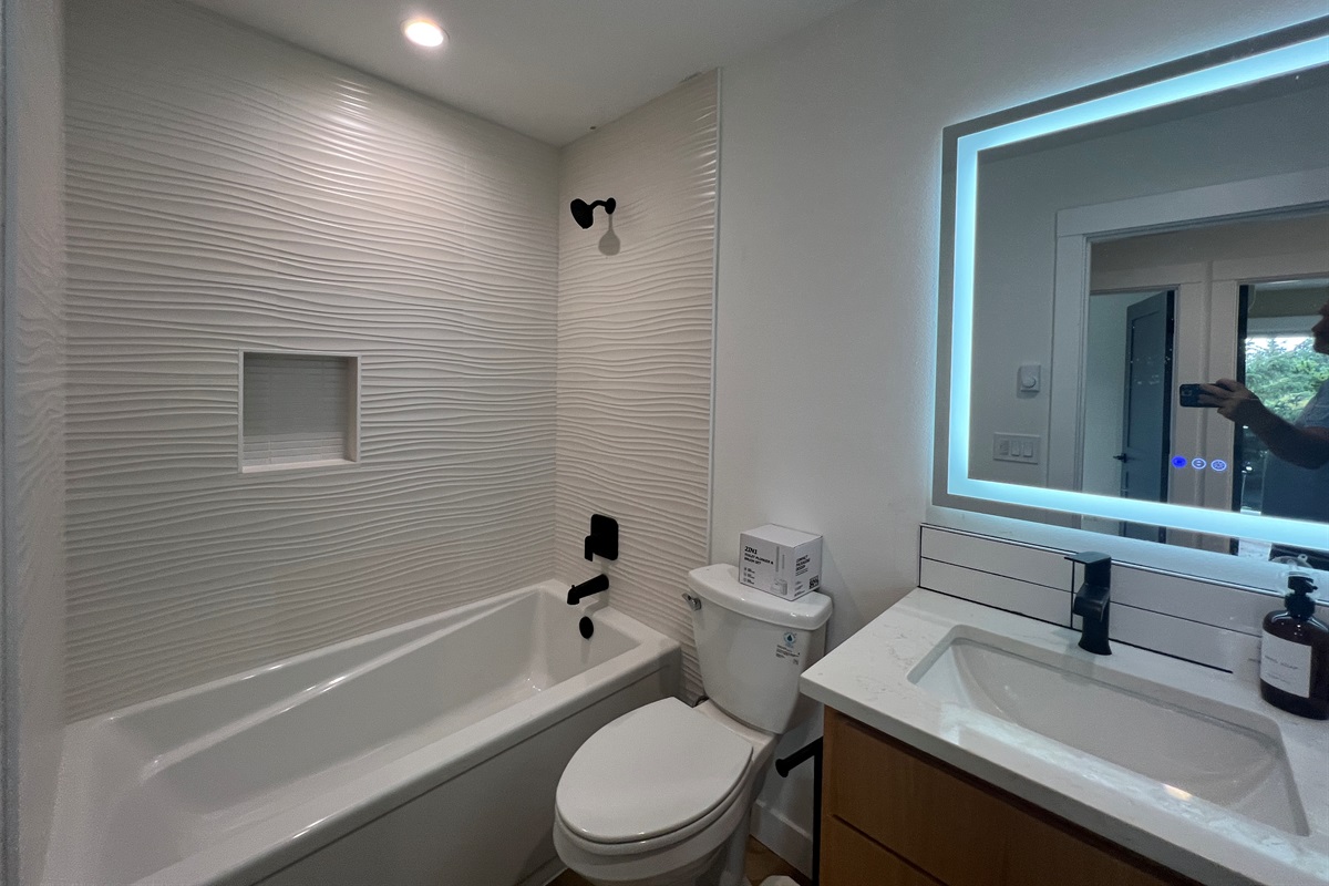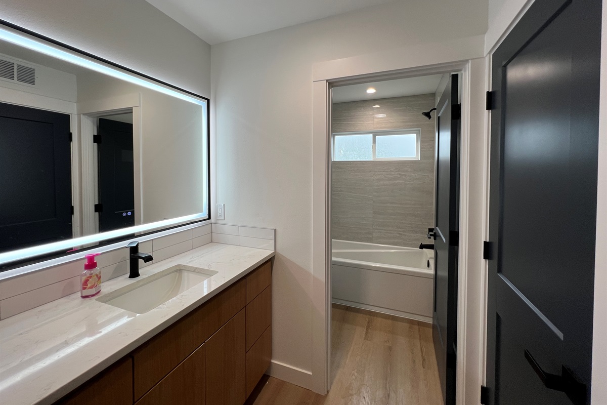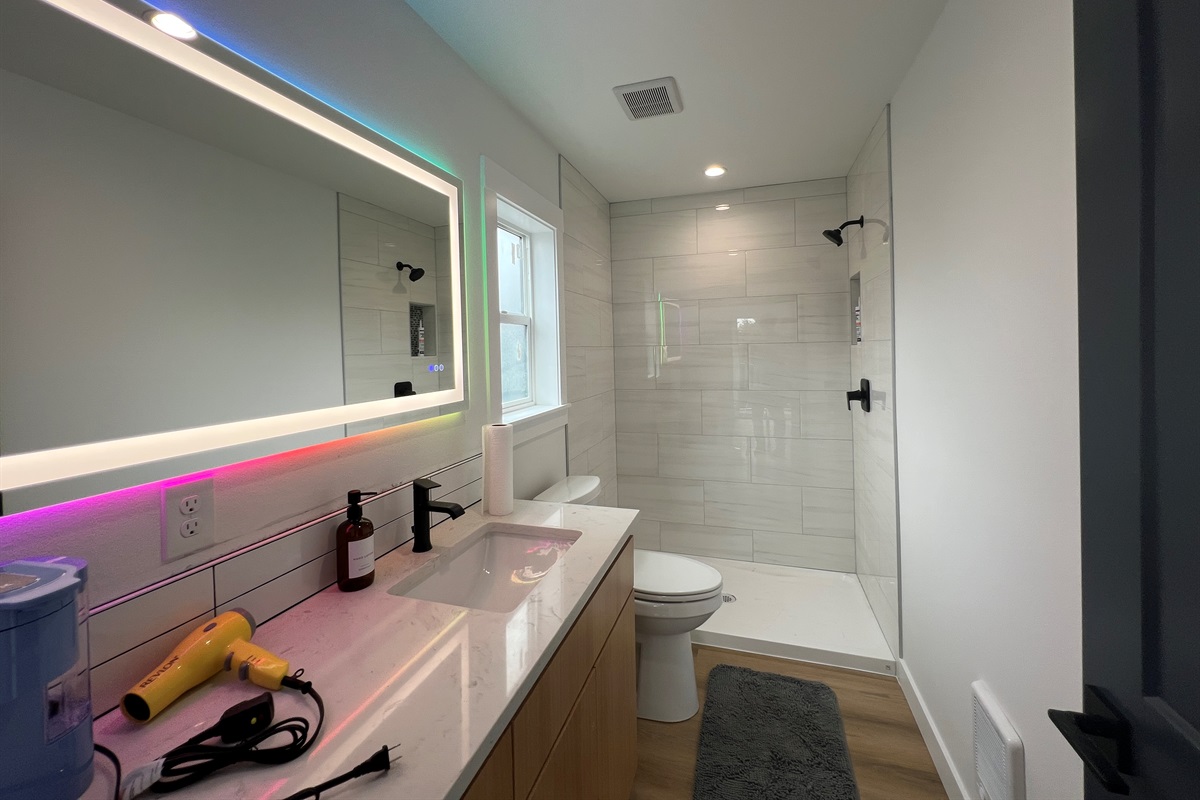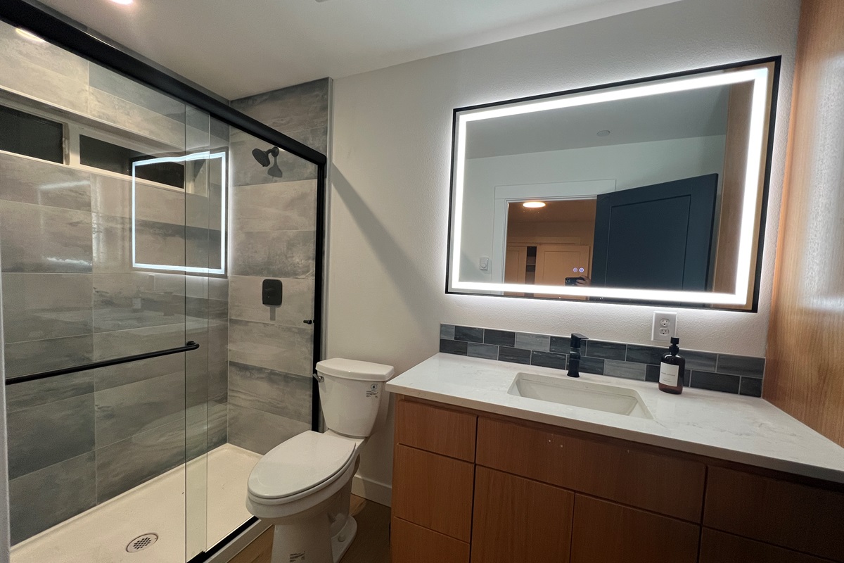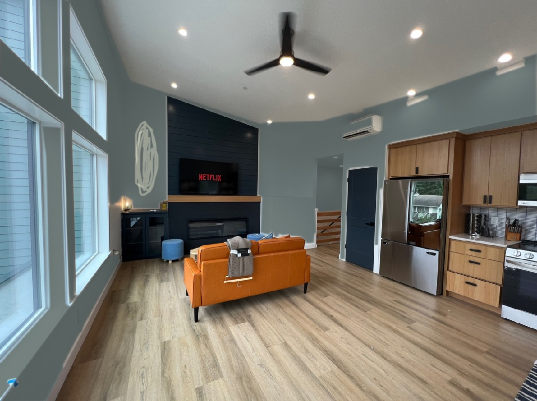 The Grand Lodge Retreat consists of two full homes rented together exclusively, connected by a private interior door upstairs only. Each side has its own entrance, kitchen, laundry, bedrooms, bathrooms, and outdoor spaces. This unique layout eliminates crowding while keeping the group connected, making it ideal for multi-generational stays.